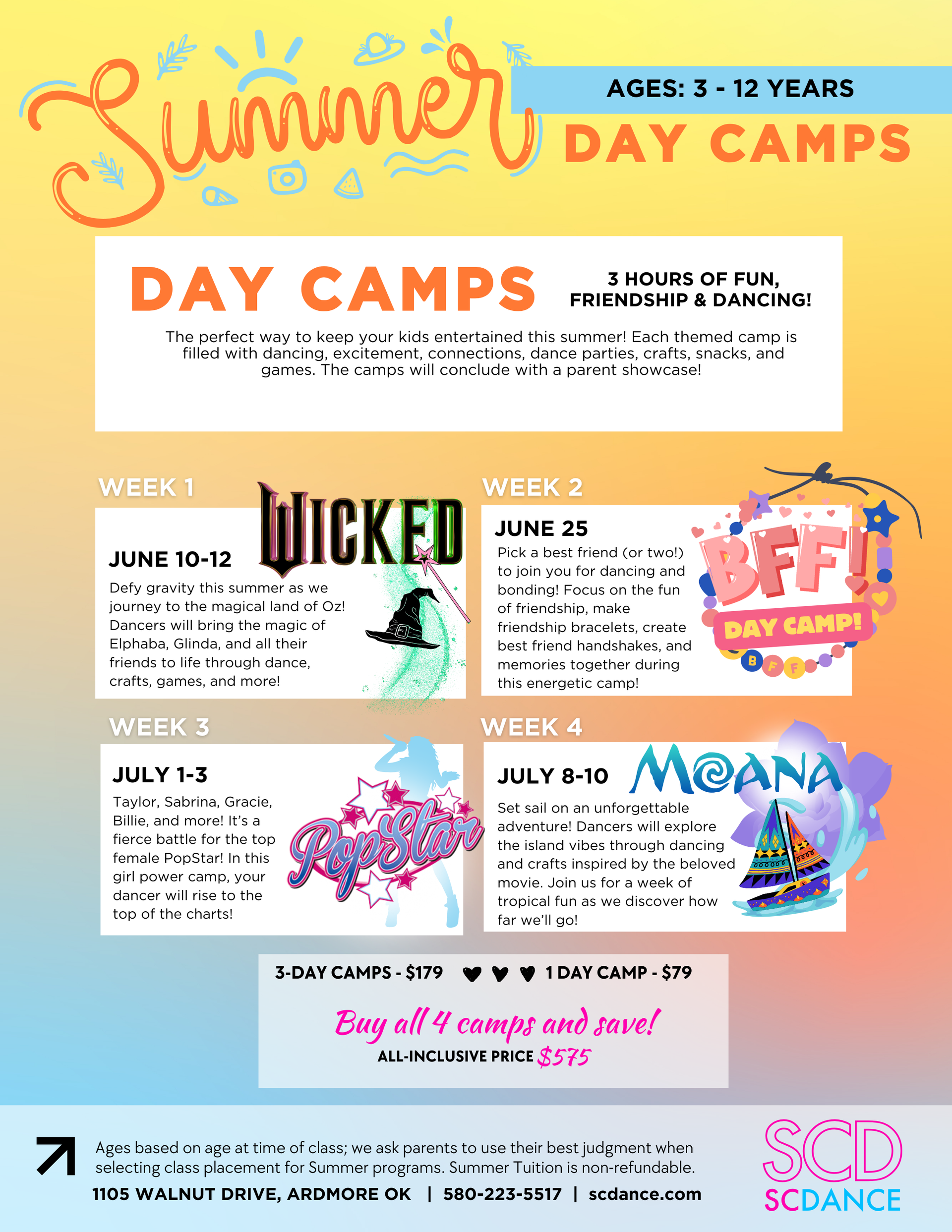 Themed camps will be the highlight of your summer! Open to dancers Ages 3-12!